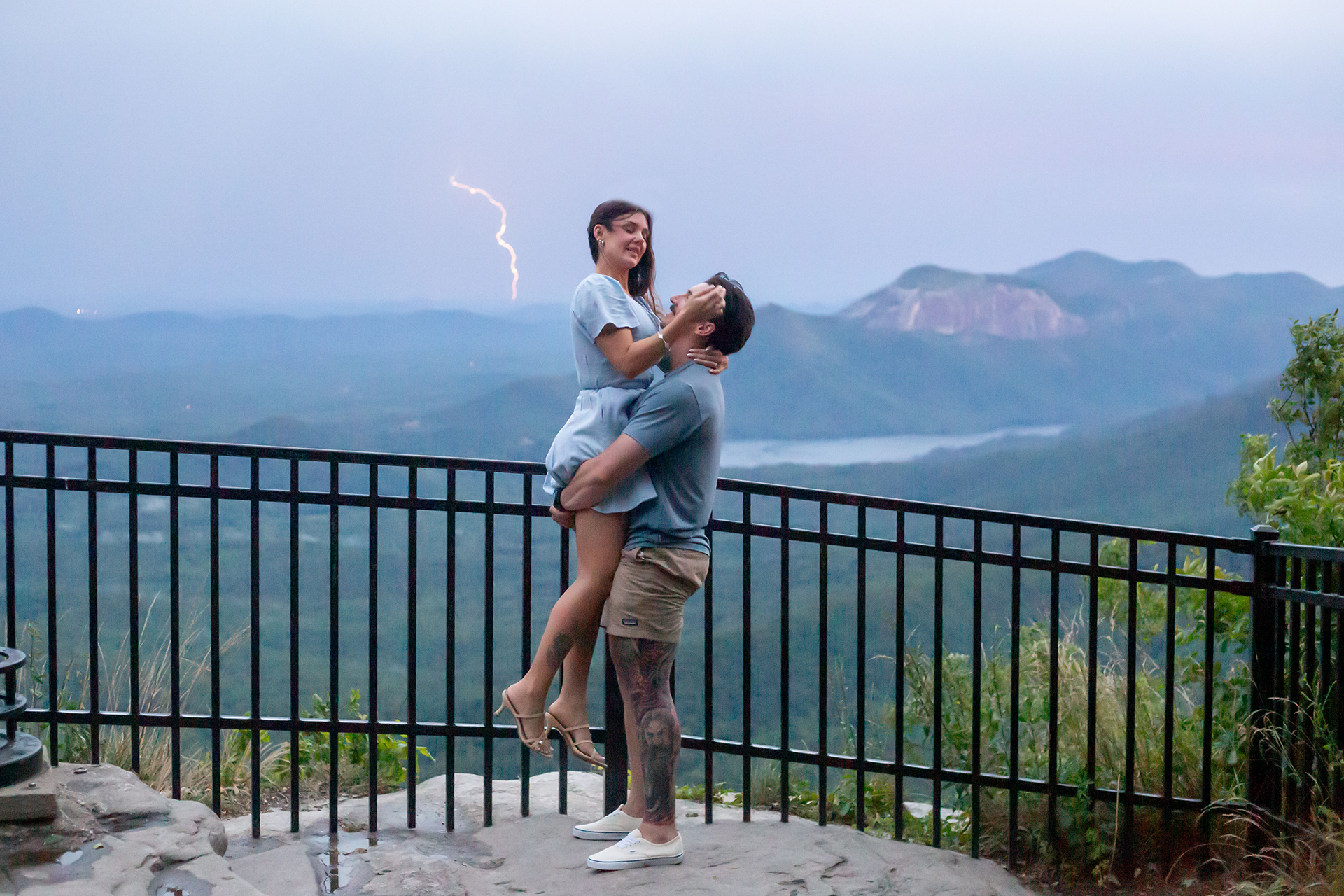 Many people find Caesars Head because they’re visiting Pretty Place Chapel, which is about 20 minutes north on the same road and right on the North Carolina border. Pretty Place faces east and has a stunning view for sunrise, but Caesars Head faces west and has an amazing view for sunset. I’ve had a few engagement sessions that used both at sunset. Caesars Head usually opens after sunrise, so I’ve never actually seen it early in the morning and I’ve never done a sunrise session there.