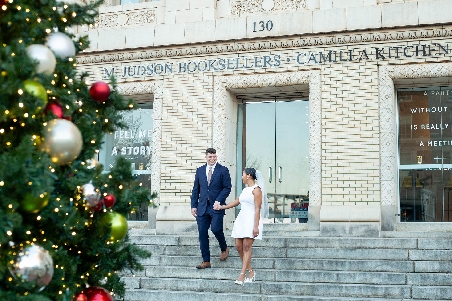 Are you thinking of having a December elopement in Greenville, SC? Here are some of my favorite wedding photos from downtown Greenville at Christmastime!